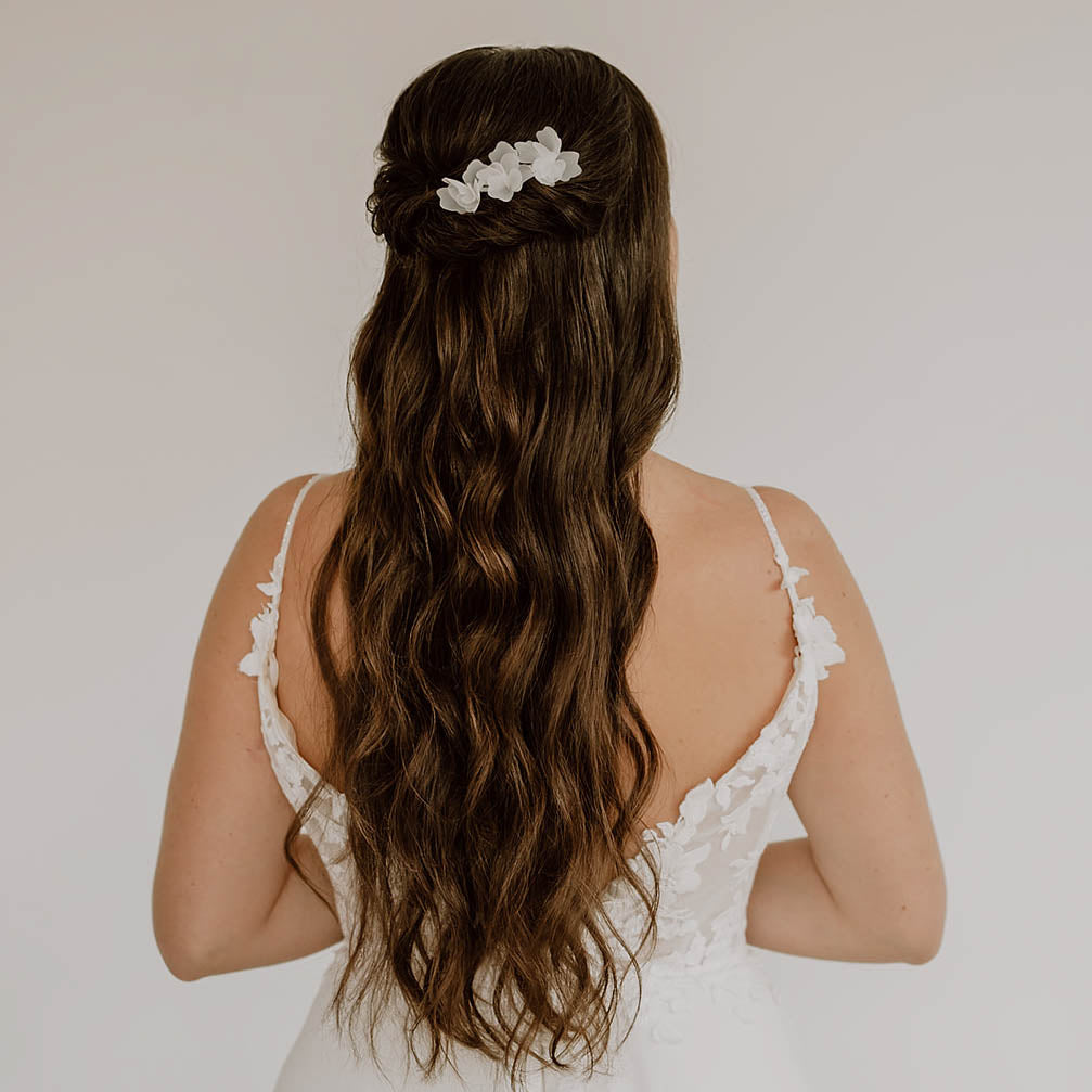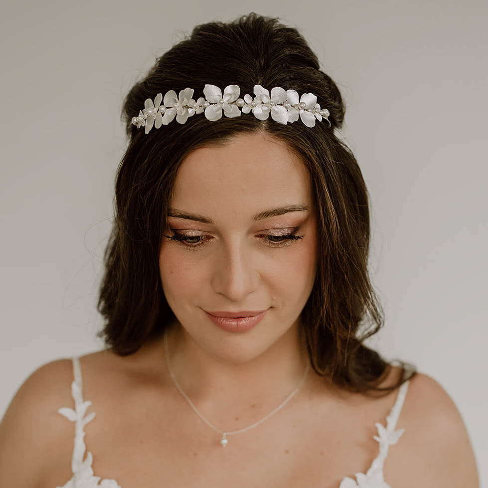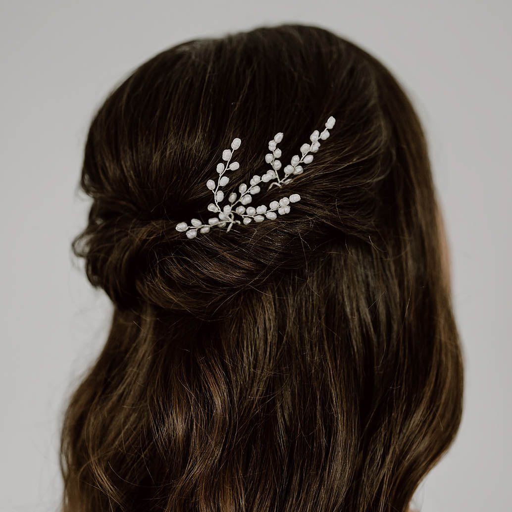 Weiterer Haarschmuck aus der neuen Brautschmuck-Kollektion: Haarnadeln Pina, Haarnadeln Alani und Haarreif Amelie.