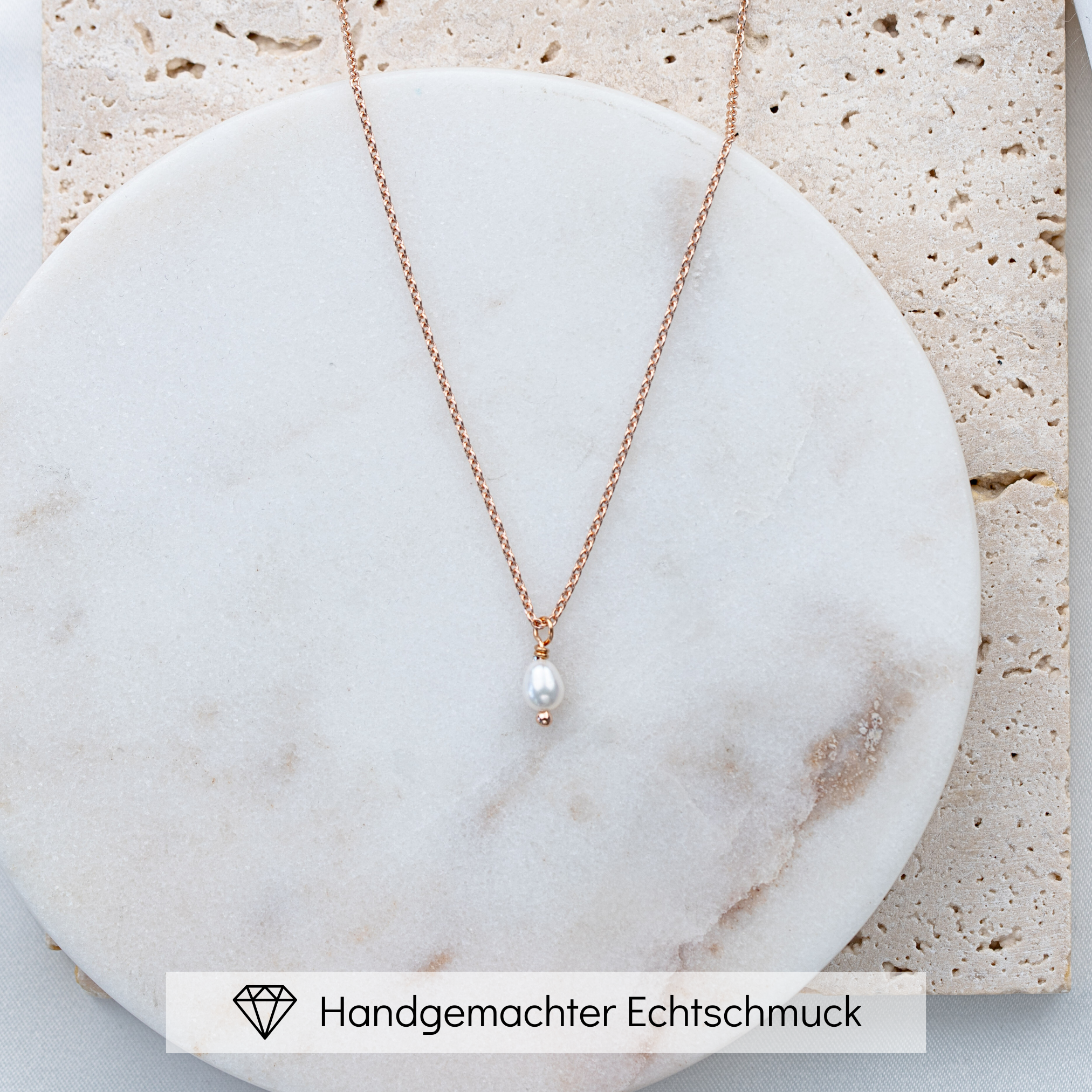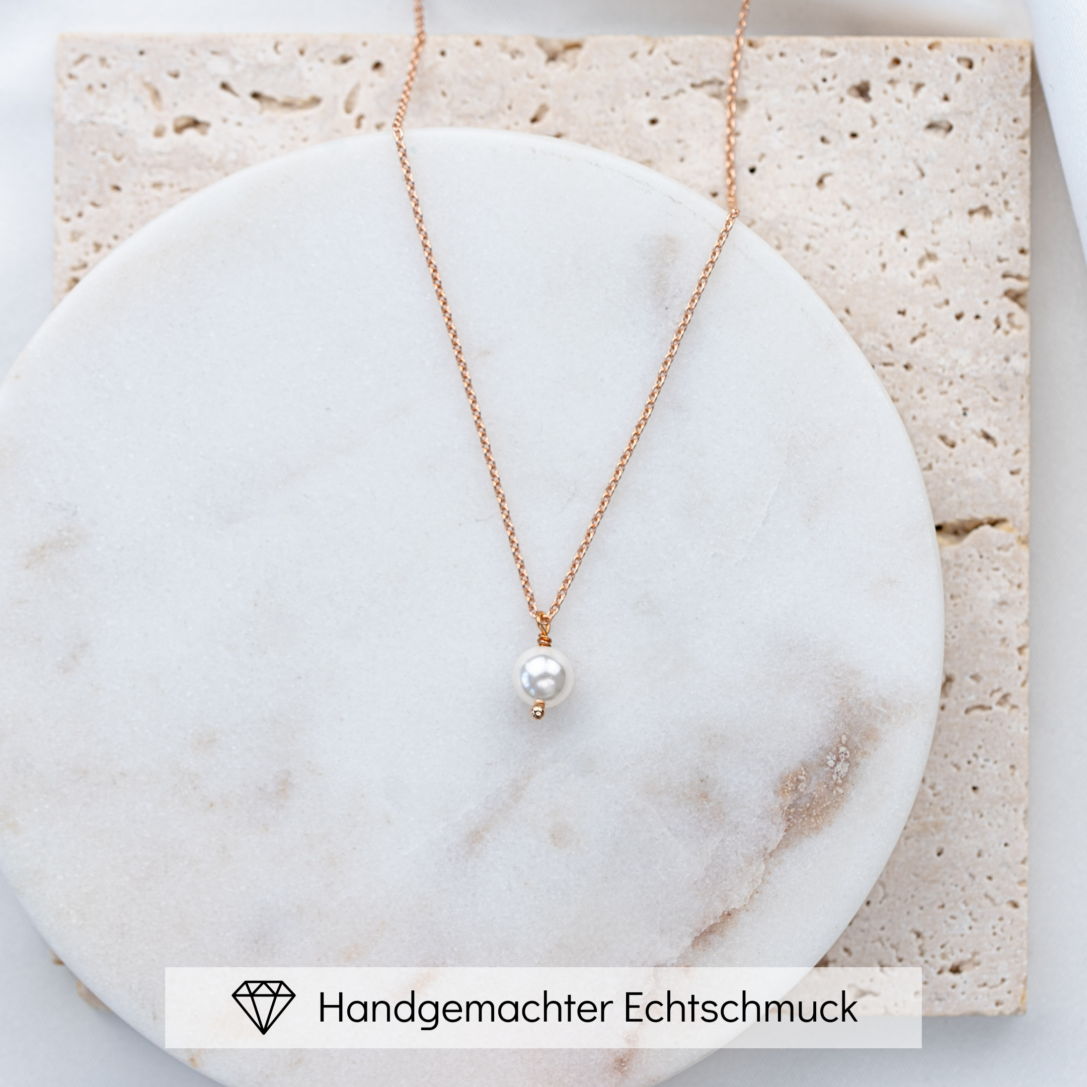 Gravur Halskette | Brauthalskette - personalisiert mit Perlenanhänger