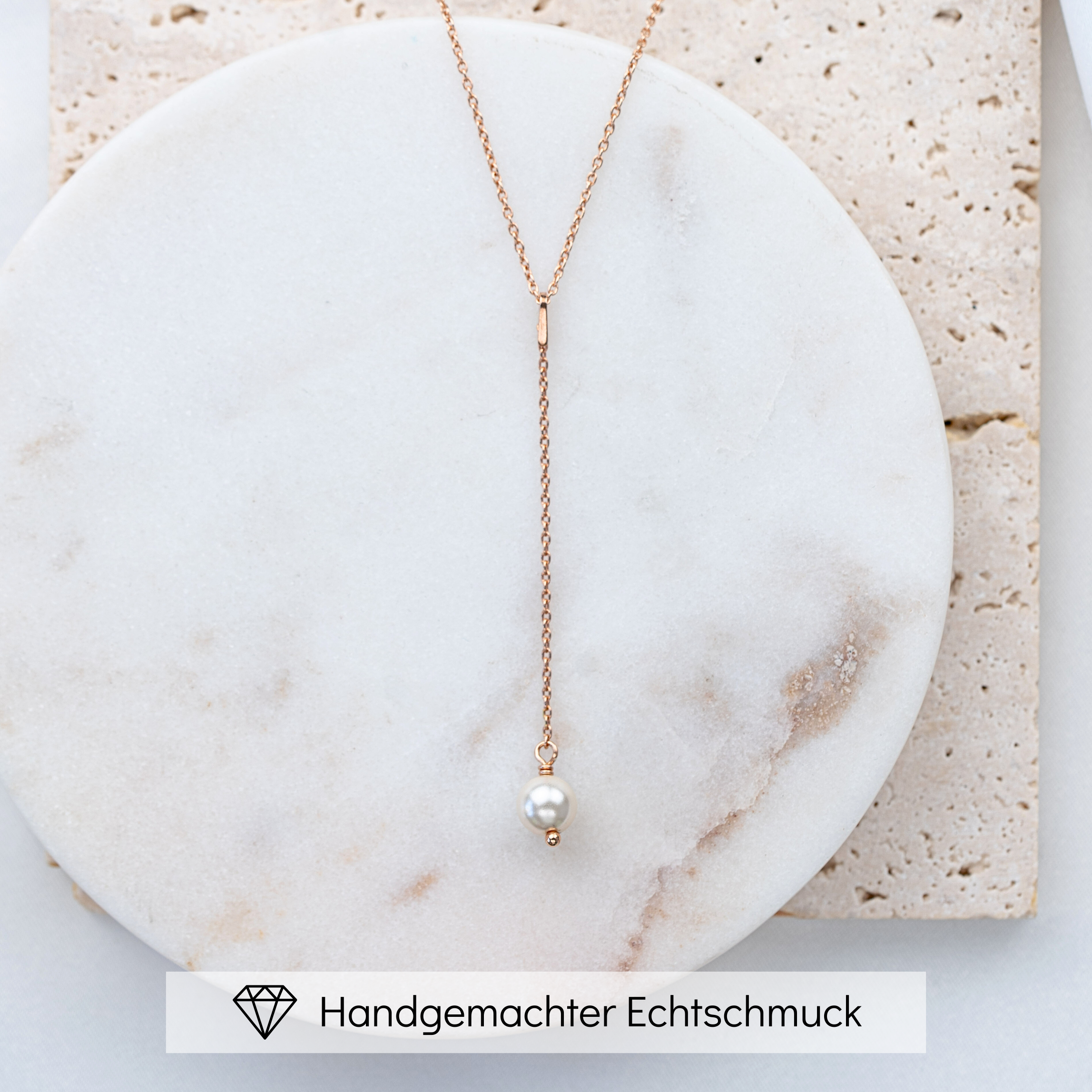 Mia | Brauthalskette mit Perle vegan - Y-Kette