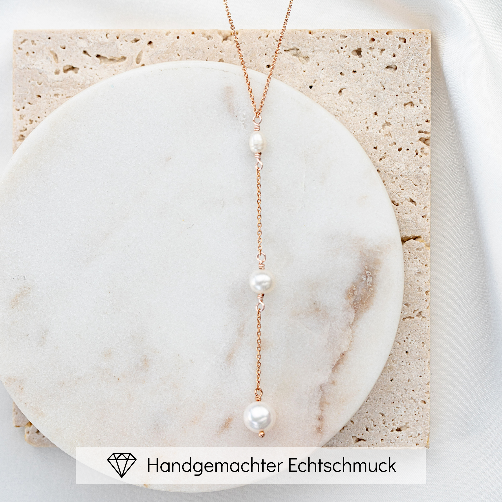 Ava | Halskette Hochzeit - Y-Kette mit echten Süßwasserperlen