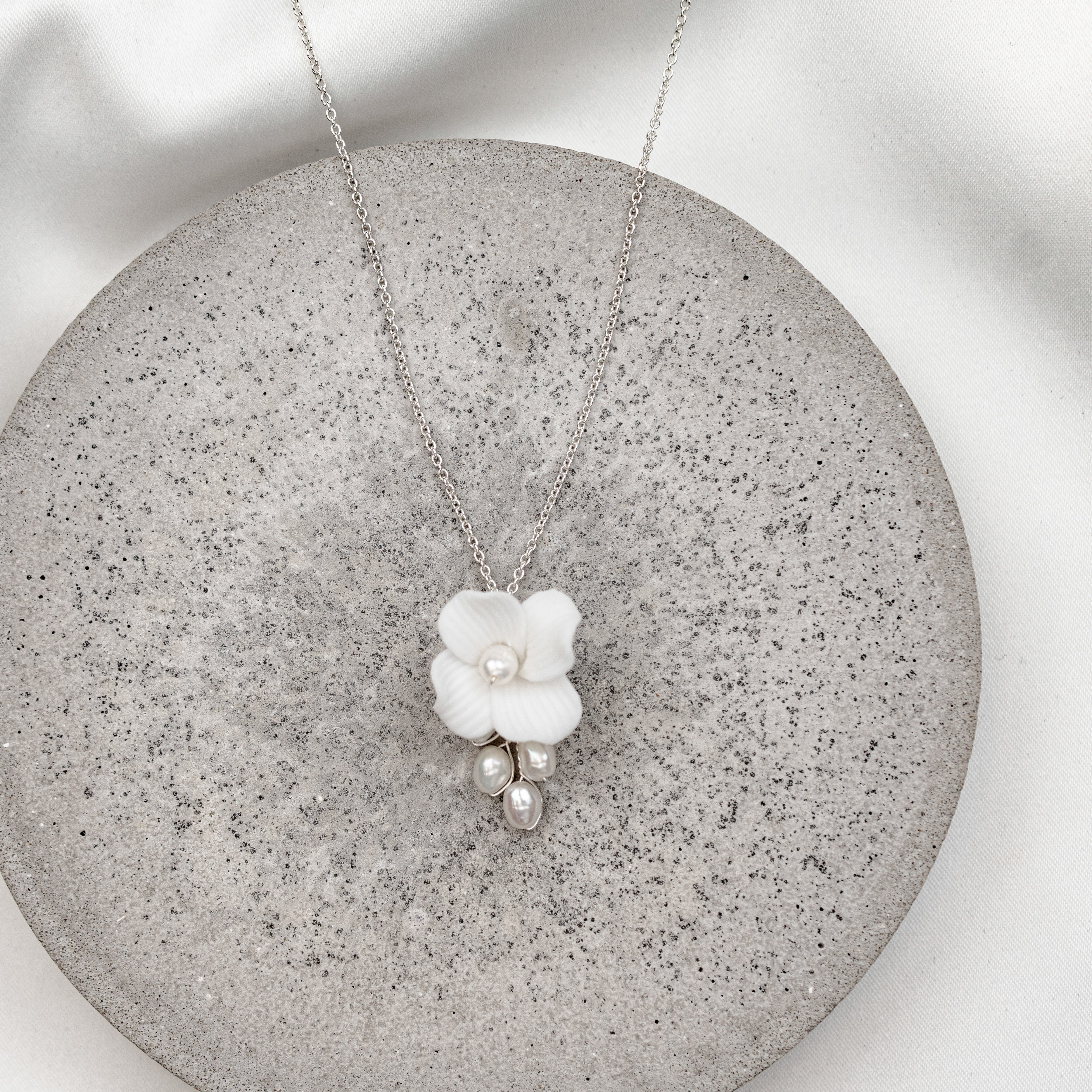 Kollektion 2026Flora | Braut Halskette mit weißer Blüte