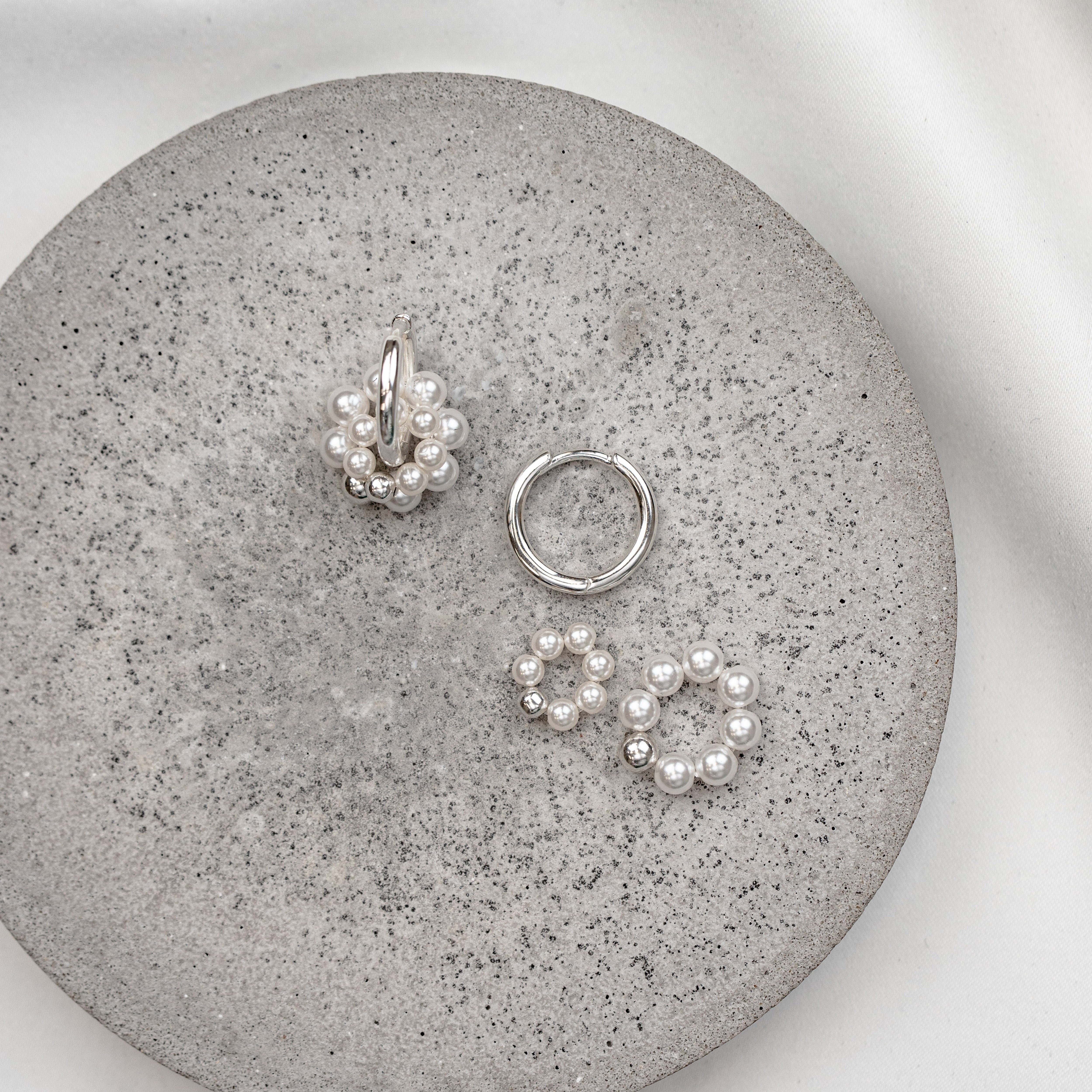 Coco Creolen | Brautohrringe mit Blüten und echten Perlen