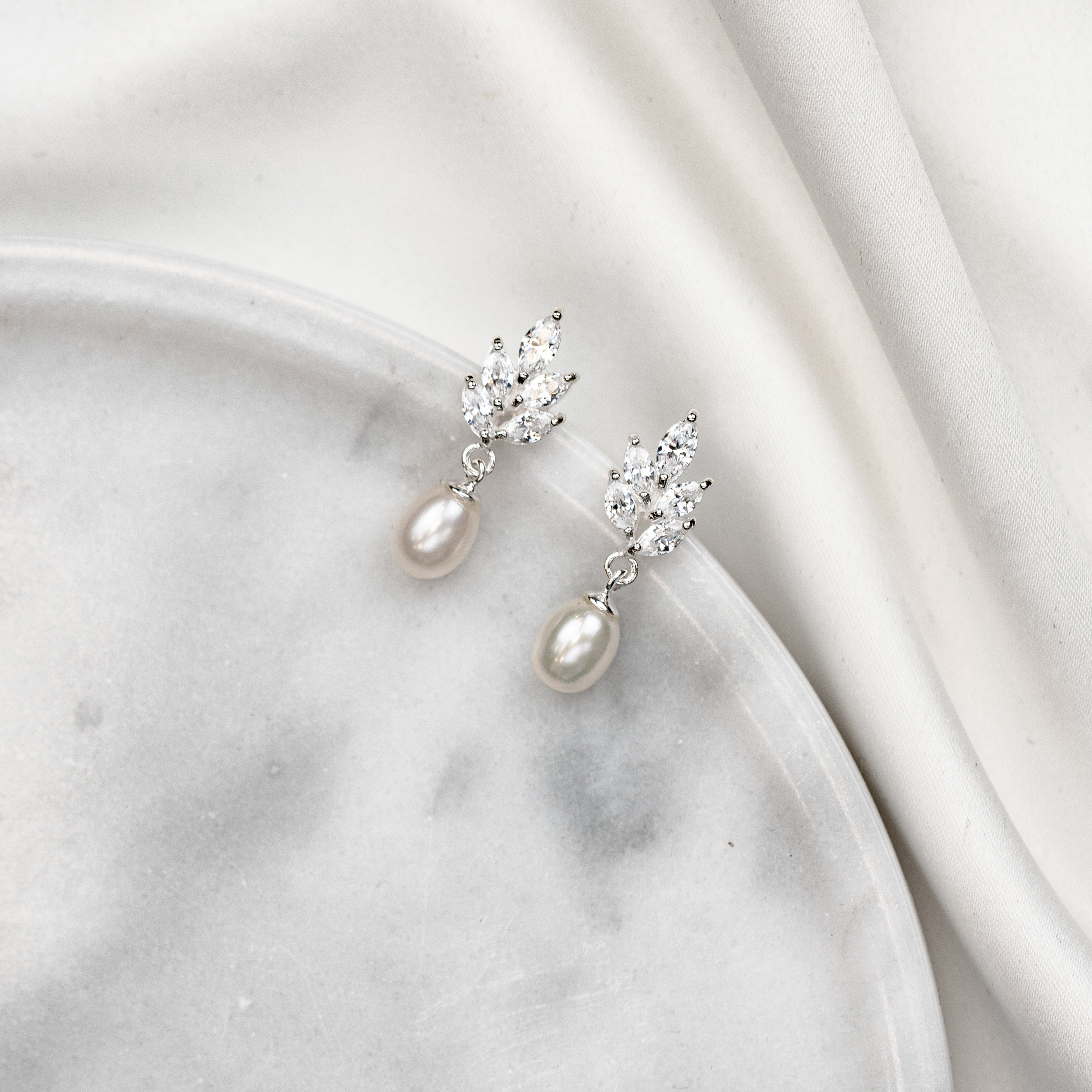 Smilla | Brautohrstecker mit Zirkonia und Perle