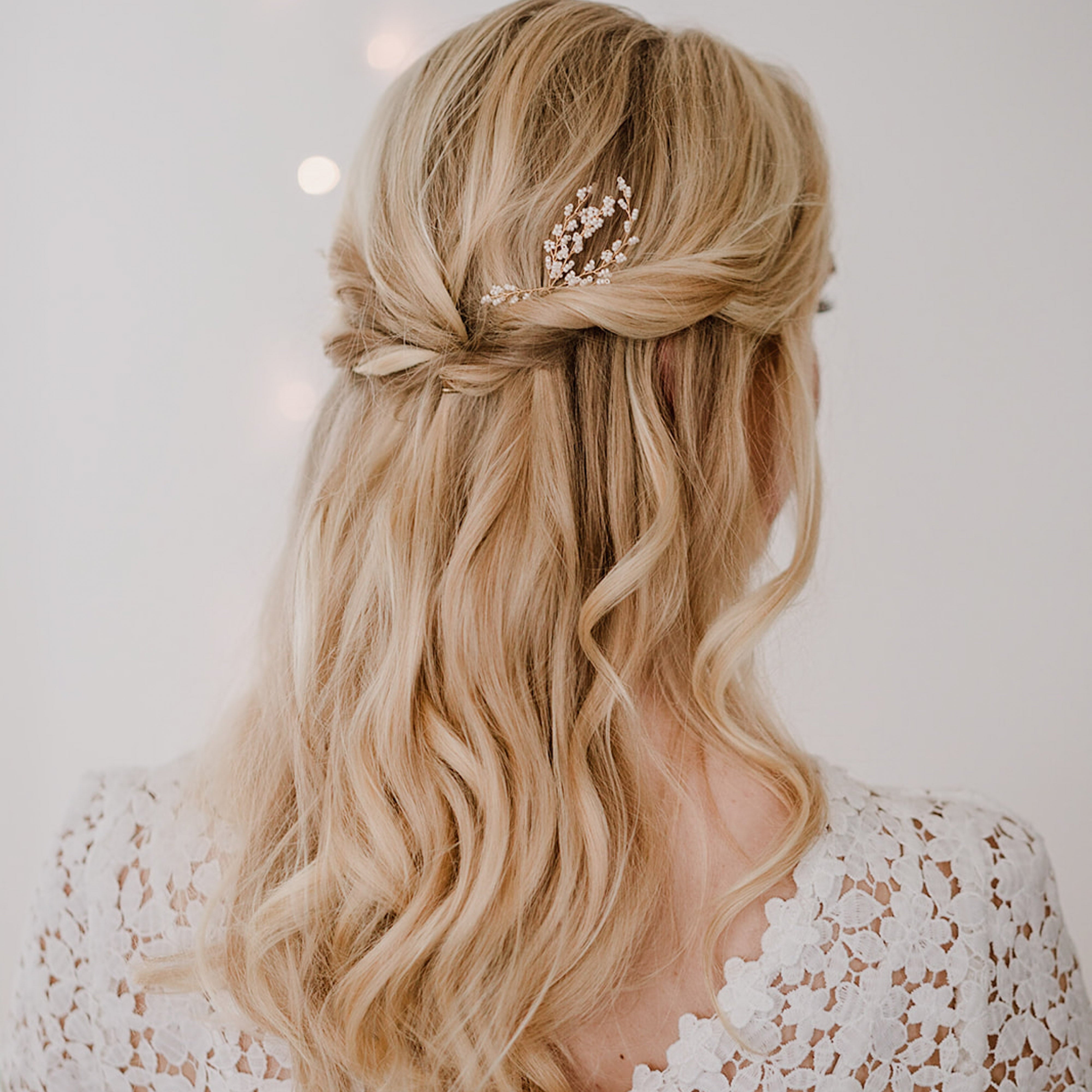 Lass Dich inspirieren und finde den silbernen Haarschmuck, der Dich an Deinem Hochzeitstag zum Strahlen bringt.