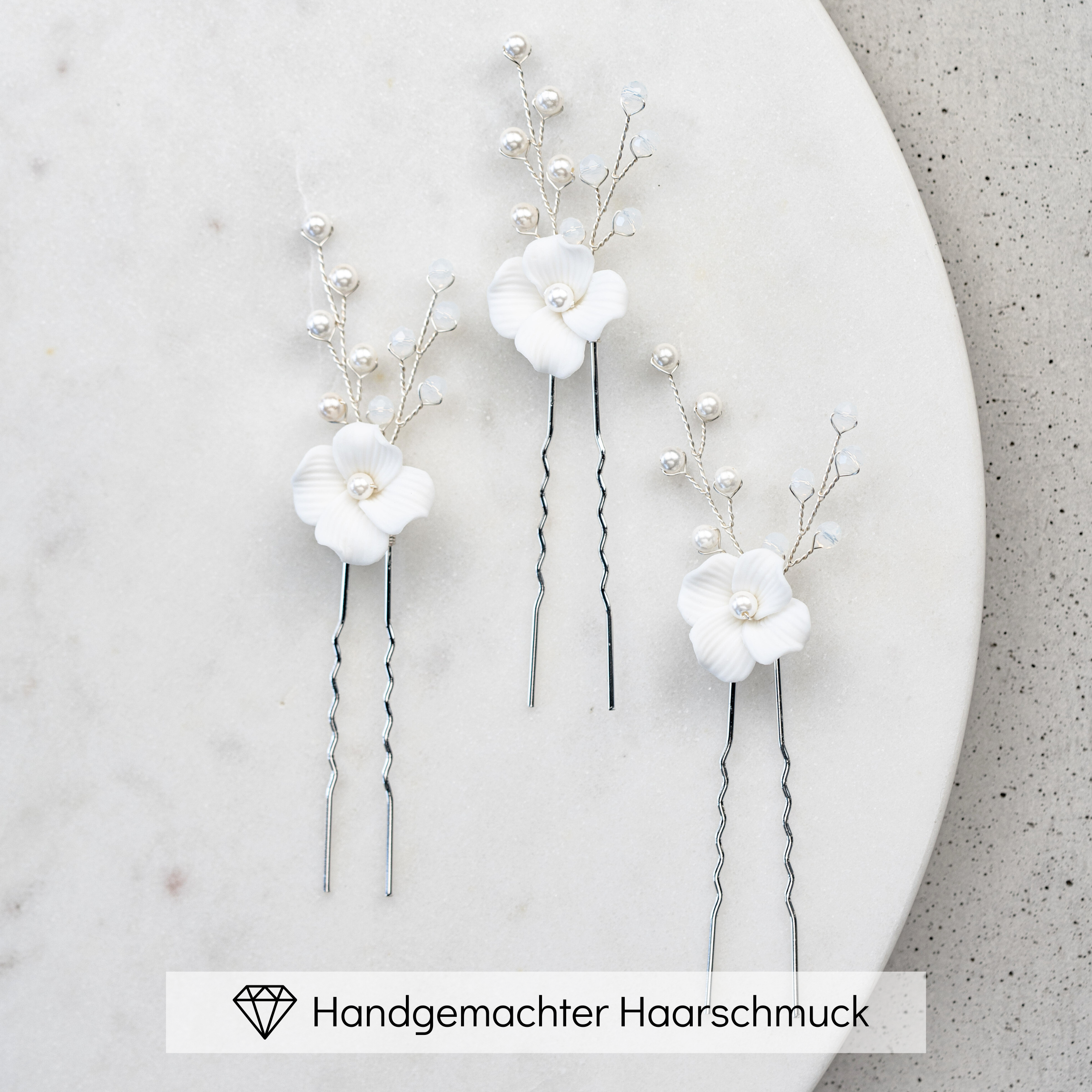 Babsi | Brauthaarschmuck - Haarnadeln mit Blüten und Perlen