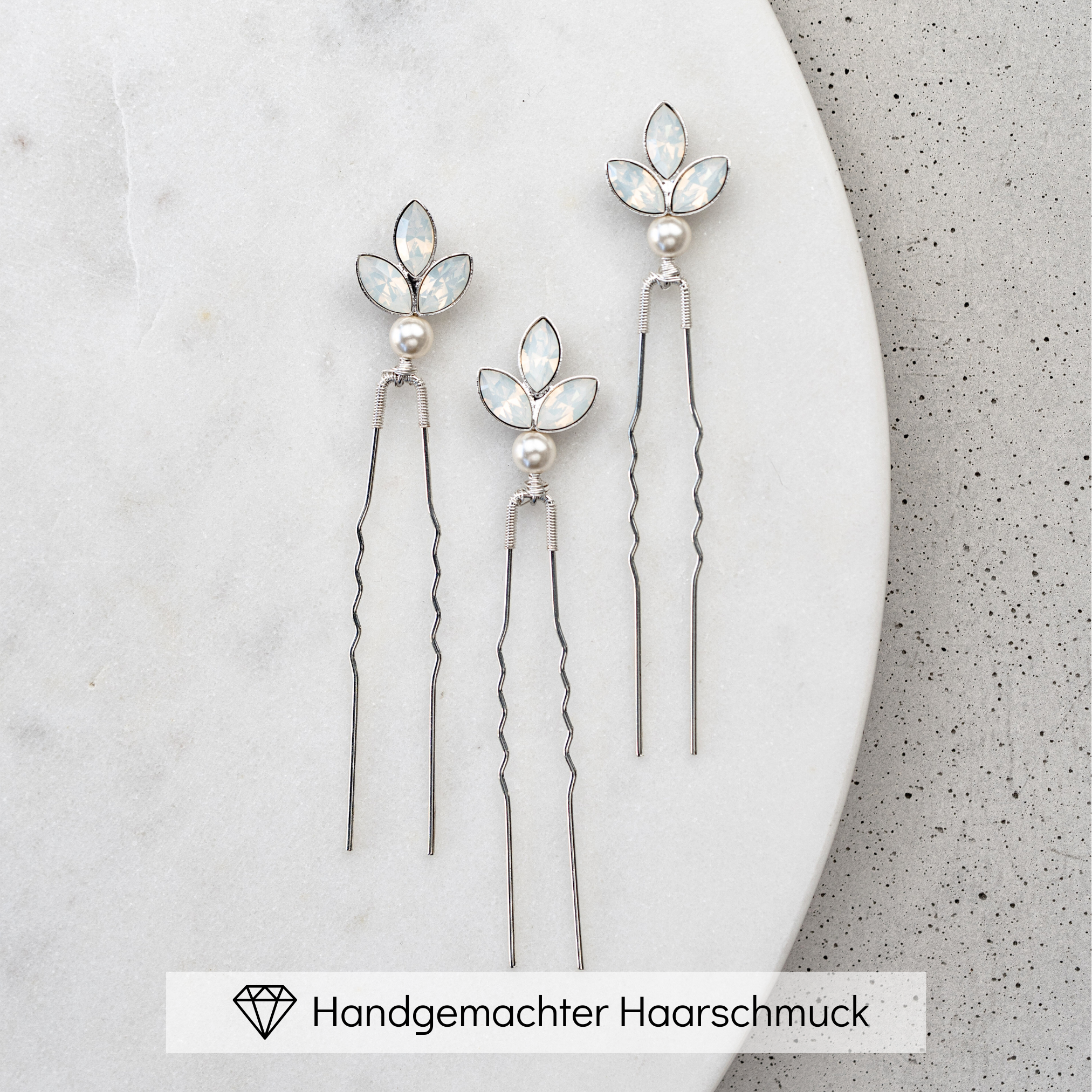 BestsellerGretchen | Haarschmuck Hochzeit - Haarnadeln mit Blättern und Perlen