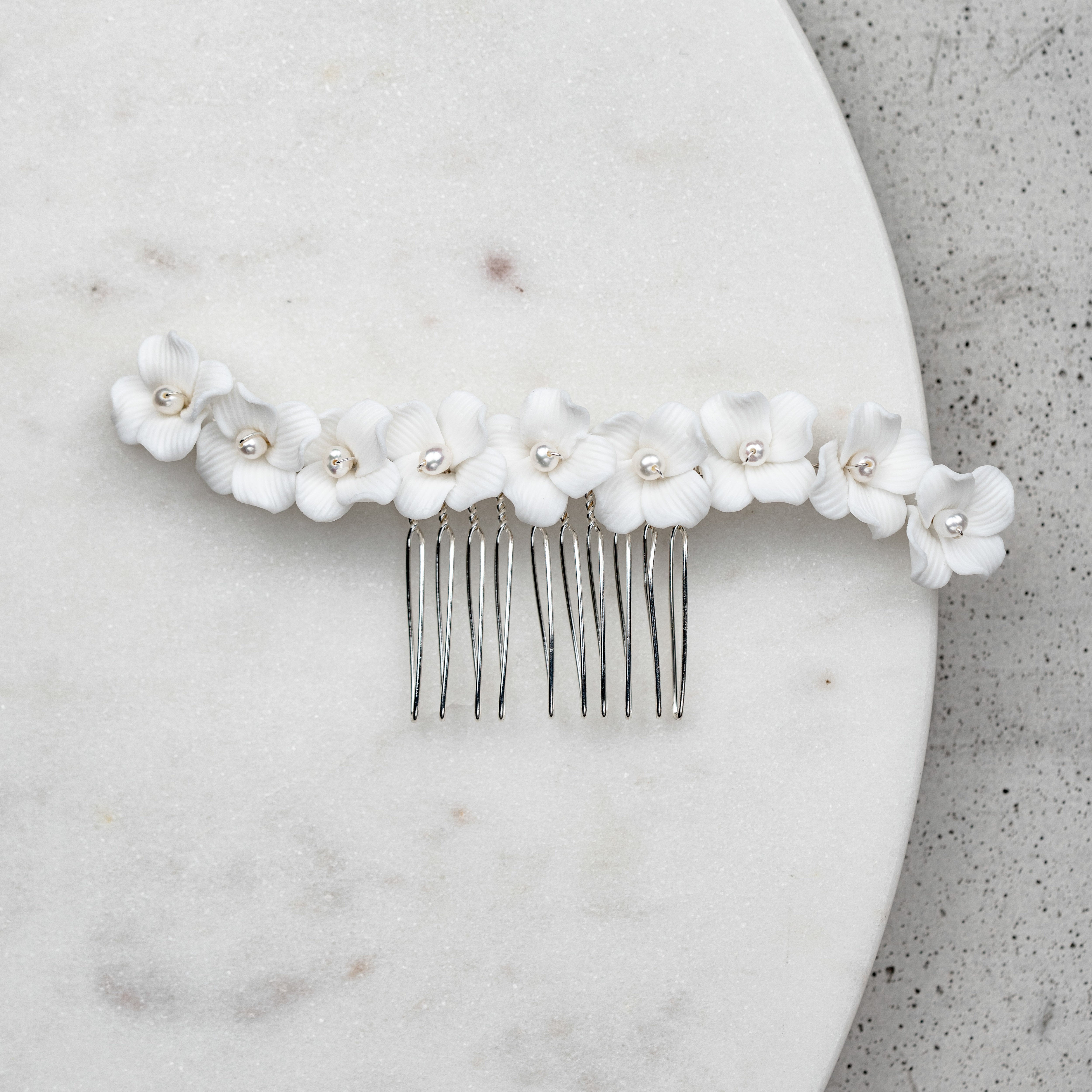 Vika | Hochzeit Haarschmuck - Haarreif mit Blüten und Perlen