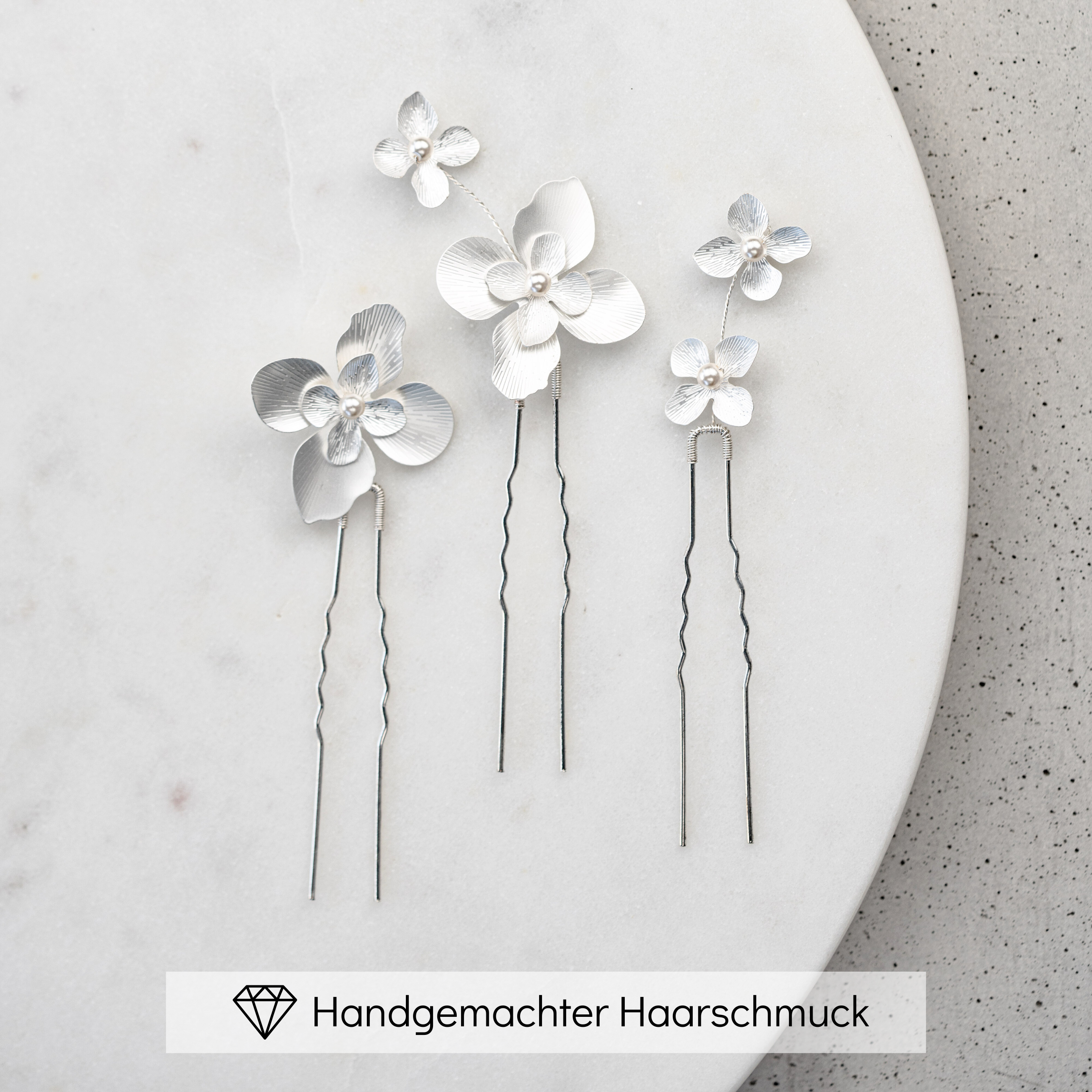Vika | Haarschmuck Hochzeit - Haarnadeln mit Blüten und Perlen