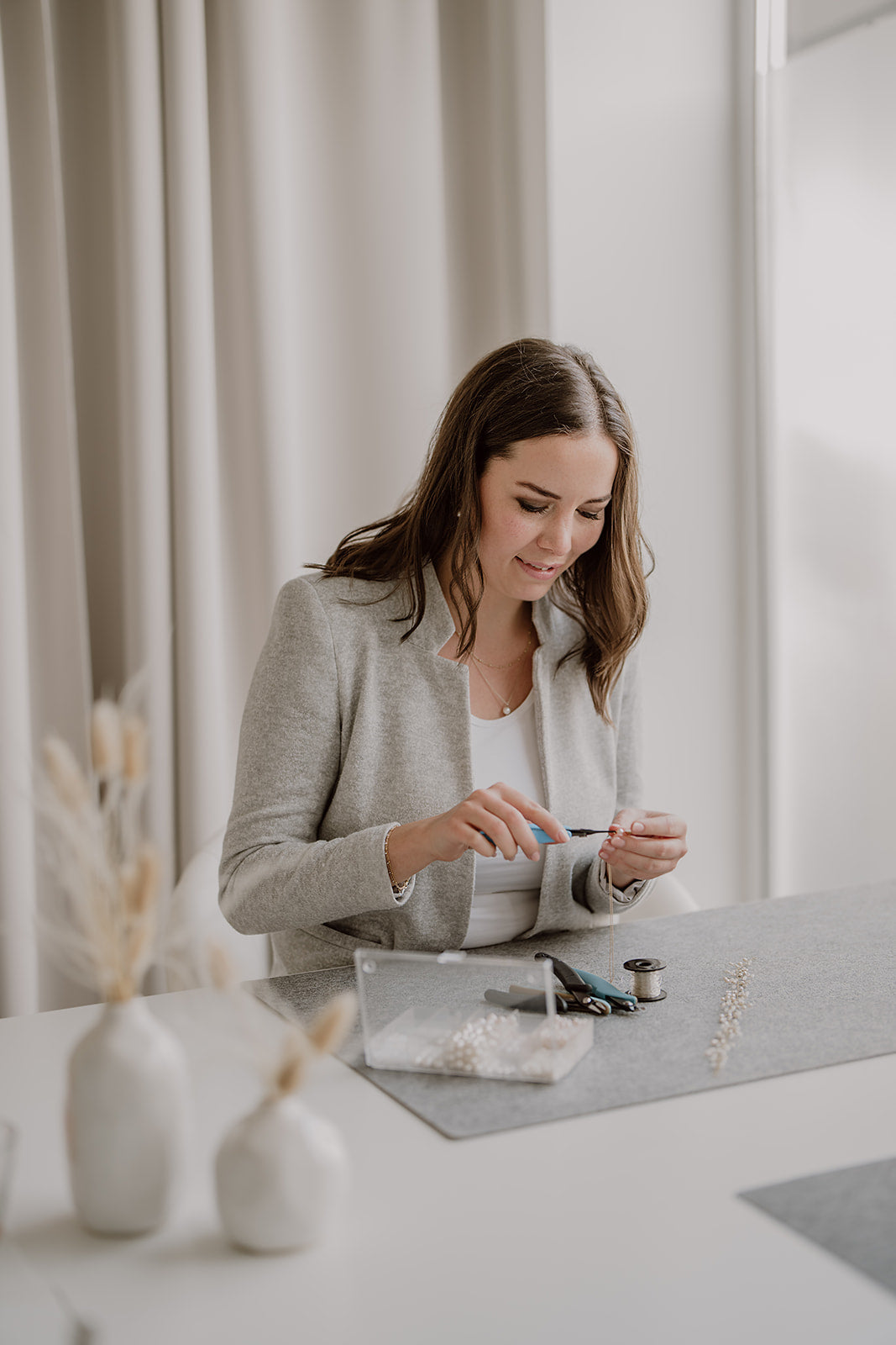 Wir sind die Expertinnen für Braut- und Haarschmuck und stellen jedes Schmuckstück in unserem Atelier in Bad Vilbel her.
