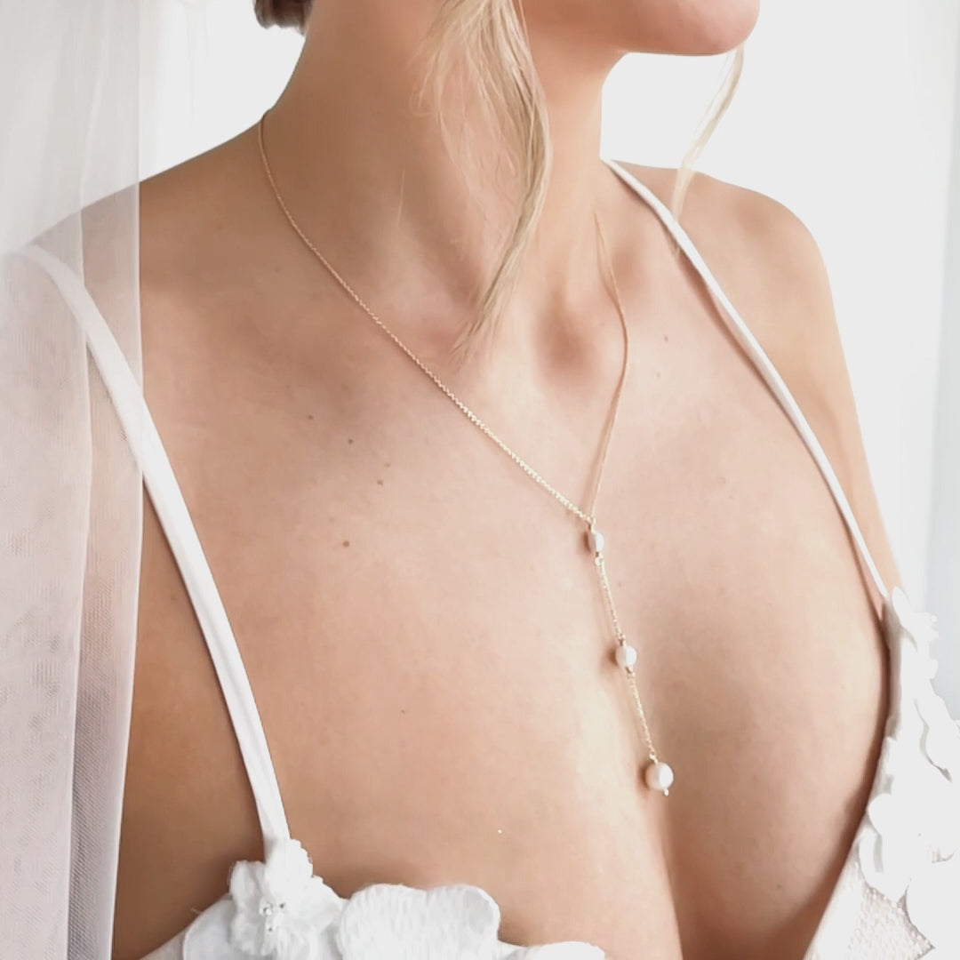 Ava | Halskette Hochzeit - Y-Kette mit echten Süßwasserperlen