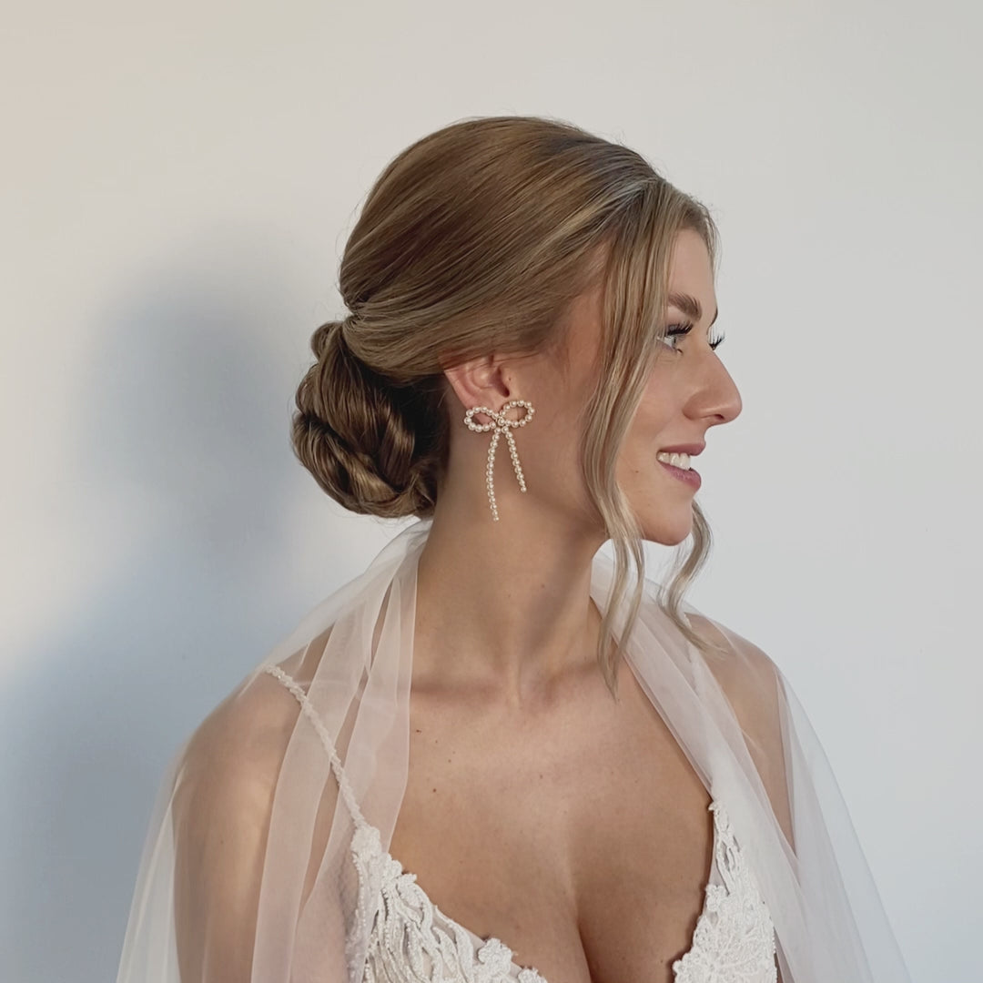 📏 Hochzeitsohrringe flexibel 6cm mit abnehmbarer Perlenschleife