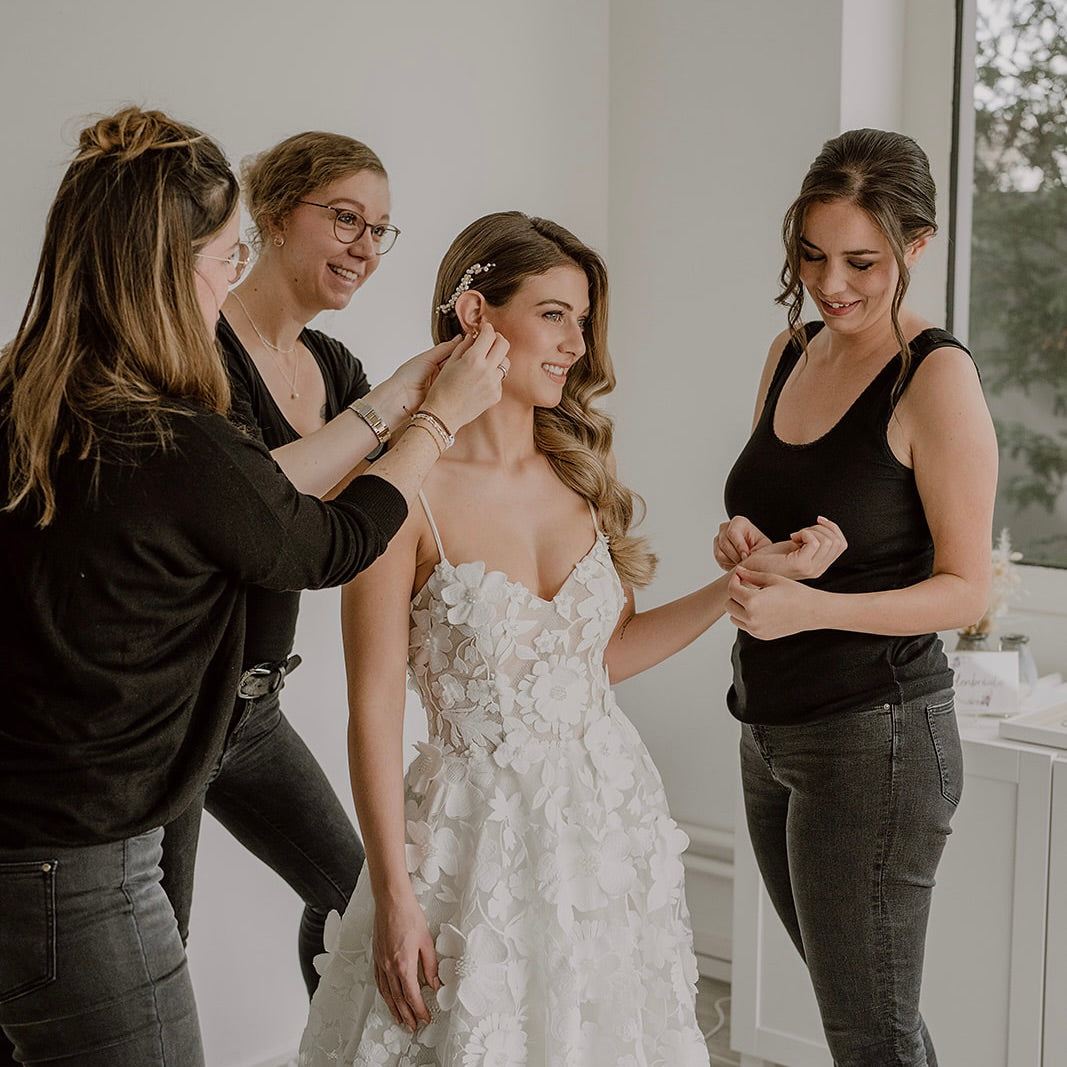 Persönliche Beratung, Individualität und Qualität stehen für uns an erster Stelle. Wir beraten dich gerne in unserem Showroom, per Mail oder whatsapp HIER. Gemeinsam mit dir entwickeln wir deinen individuell handgefertigten Brautschmuck passend zu dem Traumkleid.